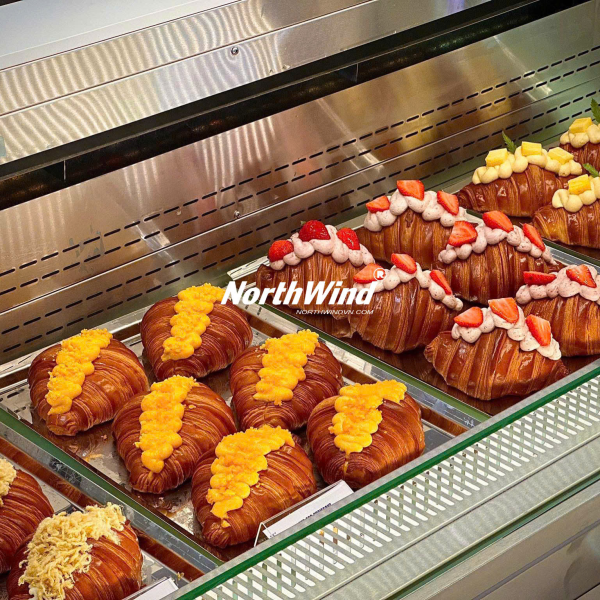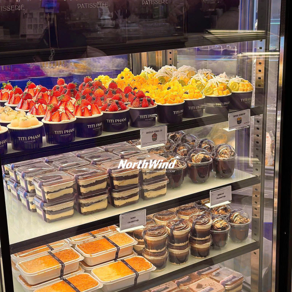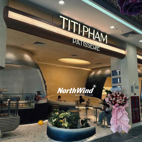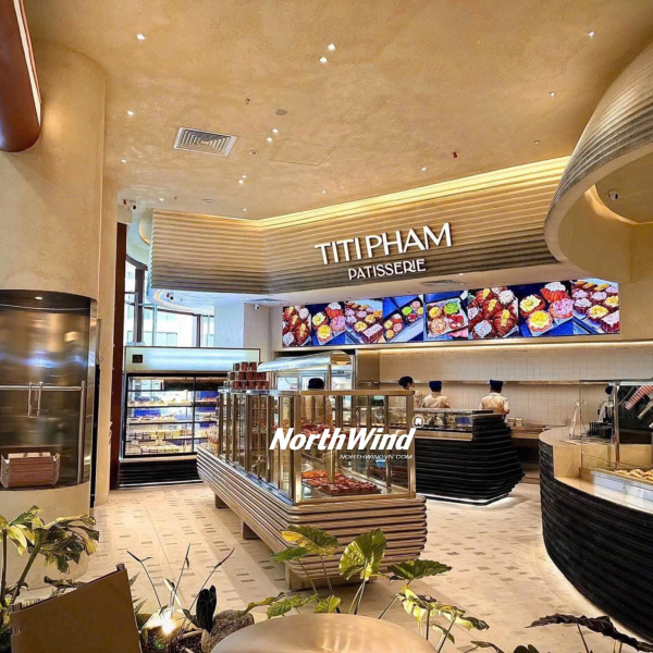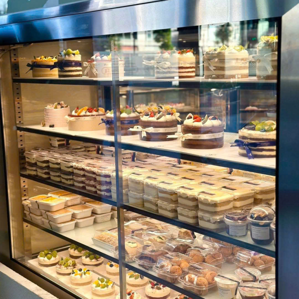 Điểm nhấn đặc biệt của Titi Pham chính là tủ trưng bày bánh được thiết kế vô cùng ấn tượng. Những chiếc bánh ngọt đầy màu sắc được bày trí khéo léo, kích thích vị giác và khiến bạn không thể rời mắt. Tủ trưng bày bánh không chỉ là nơi giới thiệu sản phẩm mà còn là một tác phẩm nghệ thuật, góp phần tạo nên vẻ đẹp sang trọng và tinh tế cho không gian quán. Với thiết kế hiện đại, tủ trưng bày bánh giúp bảo quản bánh ở điều kiện tốt nhất, đảm bảo độ tươi ngon và hương vị trọn vẹn. Không quá lời khi nói rằng, chỉ cần nhìn thấy tủ trưng bày bánh của Titi Pham, bạn đã cảm nhận được sự tâm huyết và chuyên nghiệp của thương hiệu.