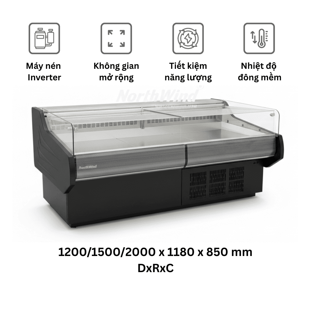Tủ trưng bày thịt dạng hở Northwind là giải pháp lý tưởng cho siêu thị, cửa hàng tiện lợi và các mô hình bán lẻ hiện đại, nơi cần tối đa hóa khả năng trưng bày và tăng tương tác trực tiếp với khách hàng. Với thiết kế không cửa, không gian mở giúp khách hàng dễ dàng tiếp cận và lựa chọn sản phẩm nhanh chóng